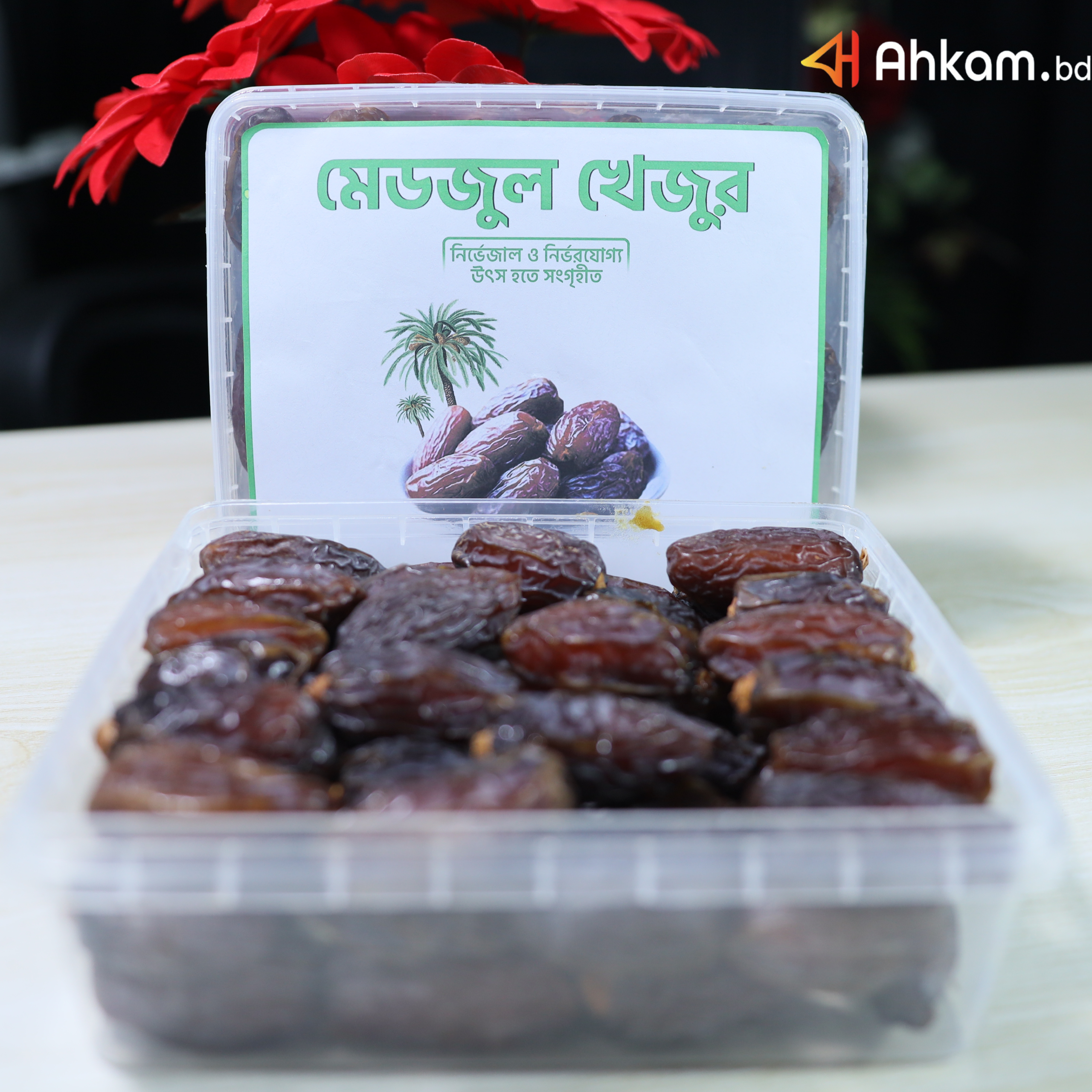 মেডজুল খেজুর শুধুমাত্র সুস্বাদু নয়, এটি স্বাস্থ্যকরও বটে। প্রতিদিন ২-৩টি মেদজুল খেজুর খেলে শরীরের জন্য ভালো ফল পাওয়া যায়। 🍀